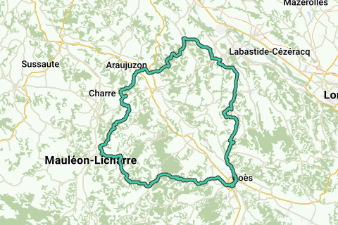 Cet itinéraire vous mène le long de pentes fortes. Arrêtez-vous une fois et méditez face à un monastère: Abbaye de Sauvelade Profiter de premier catégorie!