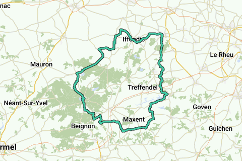 Cette randonnée à vélo à et autour de Paimpont vous donne une représentation fidèle de la ville et ses environs. Un tour difficile. Quand même faire une fois un arrêt-ravitaillement! Vous roulerez souvent sur des routes bétonnées et asphaltées. Ici vous roulez à vélo à l'ombre des arbres. La randonnée à vélo parfaite lors de la semaine du bois (Forêt de Paimpont). Vous vous intéressez de l'histoire? Alors cet itinéraire est quelque chose pour vous, car vous roulez à vélo le long d'un ancien château (Château de Comper). Regardez autour de vous. Sinon, vous manquerez quelques perles le long de cet itinéraire. Avant que vous poursuivez votre tour, arrêtez-vous certainement à Les Forges de Paimpo. En résumé, vivement recommandé!