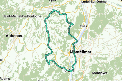 L'itinéraire vous mène le long des plus jolies routes à Borne milliaire de Mélas. Descendez une fois et admirez le château le long de cet itinéraire (Château d'Alba-la-Romaine). Par cet itinéraire vous roulez à vélo par Pont de Rochemaure (pont). Vous pouvez partir n'importe où le long du trajet. Il y a peu de chances que vous croisiez beaucoup de voiture le long de cet itinéraire. Lors de cet itinéraire vous roulez à vélo sur des routes revêtues. Lors de cet itinéraire vous pouvez profiter de grimpettes. Vous roulerez le long de nature et eau lors de cet itinéraire. Profiter de premier catégorie! Cet itinéraire reçoit certainement 10 sur 10!