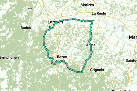 C'est un itinéraire à vélo le long de routes revêtues. Lors de cet itinéraire vous pouvez vous attendre à tout: monter, descendre et des endroits jolis pour un arrêt! Découvrez les curiosités des tours du château (Château d'Aillas) le long de cet itinéraire. Admirez certainement les curiosités le long de cet itinéraire (e.a. Enceinte de Bazas). Vous conviendrez: un itinéraire joli.