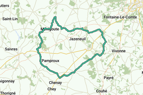 Lors de cet itinéraire vous pouvez vous attendre à tout: monter, descendre et des endroits jolis pour un arrêt! C'est un itinéraire à vélo le long de routes revêtues. Il y a peu de chances que vous croisiez beaucoup de voiture le long de cet itinéraire. Il y a une curiosité le long de cet itinéraire qu'il ne faut vraiment pas manquer: Tumulus de Bougon. Á mon avis, cet itinéraire reçoit 9 sur 10!