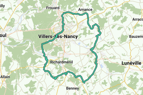 Cette randonnée à vélo à et autour de Nancy vous donne une représentation fidèle de la ville et ses environs. Une pause amusante lors de cet itinéraire serait un arrêt au château le long de cet itinéraire (Musée de l'École de Nancy). Cet itinéraire offre aussi la possibilité de descendre et de visiter un musée. Les fans de cyclisme ne prennent probablement pas ces pentes au sérieux, mais pour le cycliste 'moyen' ils sont quand même difficiles. Il y a peu de chances que vous croisiez beaucoup de voiture le long de cet itinéraire. Avant que vous poursuivez votre tour, arrêtez-vous certainement à Porte Désilles. Regardez autour de vous. Sinon, vous manquerez quelques perles le long de cet itinéraire. Cet itinéraire est assez vallonné.