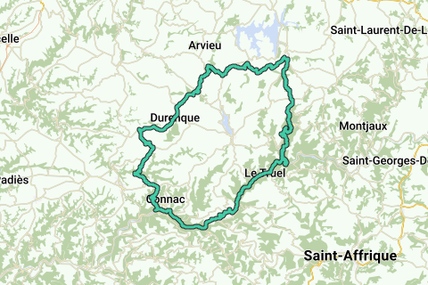 Profitez certainement des vues panoramiques fantastiques! Le long de l'eau vous voyez toujours de la faune et de la flore typique. Muni de vos jumelles? Profitez seulement! Profitez lors de cet itinéraire de l'odeur des arbres. Des bois odorants vous accompagnent lors de votre randonnée à vélo. Par temps chaud le bois (Forêt du Lagast - Tables de pique nique) offre un peu de fraîcheur supplémentaire. Une randonnée à vélo amusante! Des cyclistes sportifs passent vite l'église (Eglise collégiale de Salles-Curan) mais celui qui fait halte un instant, profitera de ce bâtiment imposant. À un jour d'été lourd le château (Château de Brousse) offre un repos agréablement frais (si ouverte). Un itinéraire qui vous charmera à coup sûr. Peu à ajouter à cet itinéraire magnifique.
