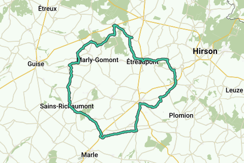 En roulant récréativement à vélo le long du pont: Église Saint-Martin d'Étréaupont vous arrivez par un circuit de nouveau à votre lieu de départ. Presque tout l'itinéraire est en pente et vallonné, avec quelques pentes fortes. Le long de cet itinéraire se trouve l'hôtel La Tour du roy. Vous pouvez aussi partir là (mais ce n'est pas nécessaire). Cet itinéraire est assez vallonné. Cet itinéraire reçoit certainement 10 sur 10!