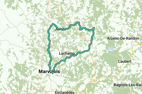 Des cyclistes sportifs passent vite le château (Château de la Grange) mais celui qui fait halte un instant, profitera de ce bâtiment imposant. Un parcours difficile à faire seul, à deux ou en groupe. Lors de cet itinéraire vous roulez à vélo sur des routes revêtues. Il y a peu de chances que vous croisiez beaucoup de voiture le long de cet itinéraire. Un fois parti le long de Roc de Peyre, vous découvrez aussi de nombreuses routes cyclables fantastiques. Admirez certainement les curiosités le long de cet itinéraire (e.a. Collégiale Notre-Dame-de-la-Carce de Marvejols). Cet itinéraire est à ne pas manquer.