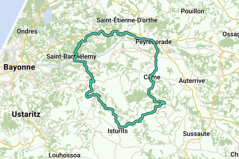Ce circuit à vélo vous mène le long de quelques routes et pistes cyclables amusantes le long du pont: PEYREHORADE Des cyclistes sportifs passent vite le château (Château de Montréal) mais celui qui fait halte un instant, profitera de ce bâtiment imposant. Lors de cet itinéraire vous pouvez vous attendre à tout: monter, descendre et des endroits jolis pour un arrêt! Il y a peu de chances que vous croisiez beaucoup de voiture le long de cet itinéraire. Cet itinéraire reçoit certainement 10 sur 10! Vous ne vous ennuierez pas le long de cet itinéraire.