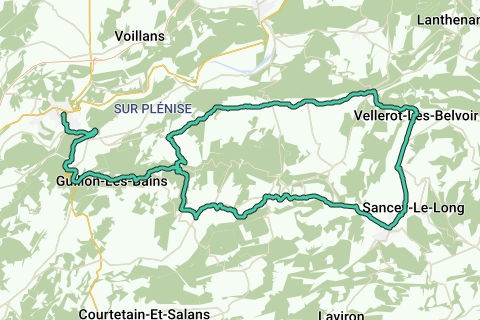 A partir de Baume les Dames, prendre la direction de Guillon les Bains,Cusance par la D50 puis la D 306. Après Cusance, monter à Lanans en prenant sur la droite. A Lanans, prendre à gauche diection Sancey le grand . Par la D31 rejoindre Rahon,Vellerot les Belvoir, puis par La D19E traverser Crosey le Grand puis Crozey le Petit et à Lomont sur Crête, redescendre sur Cusance puis rejoindre Baume les Dames.