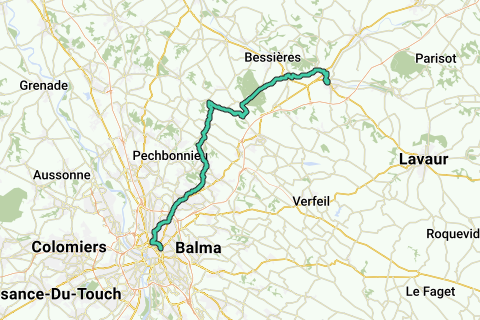 Villes traversées : Toulouse, Saint-Jean, Lapeyrouse-Fossat, Bazus, Buzet-sur-Tarn, Saint-Sulpice-sur-Tarn.