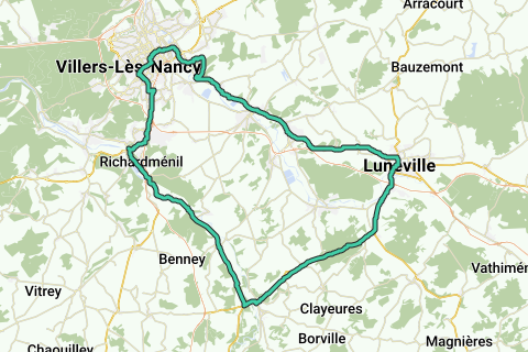 Circuit pour vélo de route au départ et à l'arrivée de Lunéville, en passant par Bayon et Nancy...