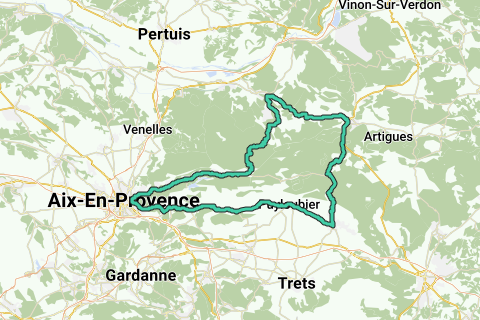 tour de la sainte victoire départ le tholonet vers Aix. A vauvenargues direction jouques puis rian puis poudrière et retour tholonet