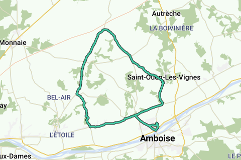 Parcours Vélo avec belles montées à NOIZAY et NEUILLE LE LIERRE et MONTREUIL . Belles descente par la suite. Agréable car pas beaucoup de circulation