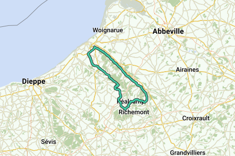 Vallée de la Bresle jusque Bouaffles puis à gauche côte de la Basse Copette, retour dans la vallée de l'Yères puis en forêt d'Eu