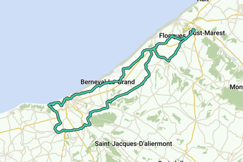 Aller le long de la côte jusqu'à Dieppe. Montée à Offranville par une piste cyclable puis retour par la campagne.