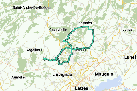 Vailhauquès, Grabels, Fontfroide, St Clément, Source du Lez, Les Matelles, Les Cazarels, St Mathieu, St Bauzille de Montmel, Montaud, Assas, Prades, St Gély, Combaillaux, Vailhauquès