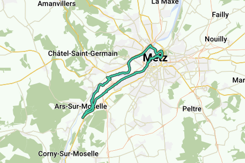 Départ Maison du vélo - Aqueduc Jouy-aux-Arches par les remparts, Pontiffroy, pour rejoindre le véloroute "Echappée Bleue" (Charles le Téméraire), jusqu'à l'aqueduc de Jouy-aux-Arches, puis retour par le canal de Jouy, allée du Bras Mort, Cathédrale, Eglise Sainte Ségolène, Maison du Vélo