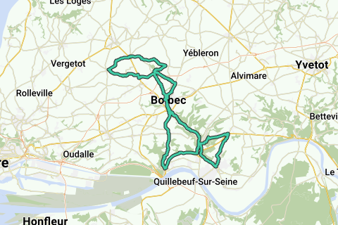 Lillebonne, La Frenaye, Les Quatre Chemins, Gravenchon, Le Mesnil, Lillebonne, Le four à Chaux, Radicatel, Tancarville Bas, St Nicolas de la Taille, St Antoine la Fôret, Gruchet le Valasse, Bolbec, Le Val au Grès, Nointot, Mirville, Vatteot sous Beaumont, Bréauté, Manneville la Goupil, Houquetot, Gare de Bréauté, Mirville, Bolbec, Gruchet, Le Becquet, Lillebonne.