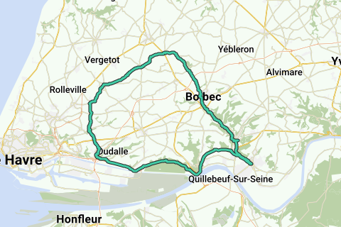 Lillebonne, Le Mesnil, Gravenchon, Le Four à Chaux, Radicatel, Tancarville Bas, Route des Falaises, St Vigor, La Vallée, Rogerville, Gaineville, St Laurent de Brevedet, Maneglise, Angerville l'Orcher, Manneville la Goupil, Bréauté, Versaille, Beuzevillz la Grenier, Mirville, Bolbec, Gruchet le Valasse, Le Valasse, Lillebonne.