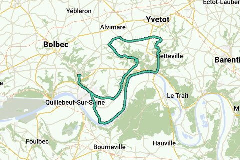 Lillebonne, Le Mesnil, Gravenchon, Norville, St Arnoult, St Gertrude, St Aubin de Crétot, Bois Himont, Touffreville la Corbeline, Rançon, Caudebec, Villequier Bas, Le Vélo route, Petiville, Gravenchon, Le Mesnil, Lillebonne.