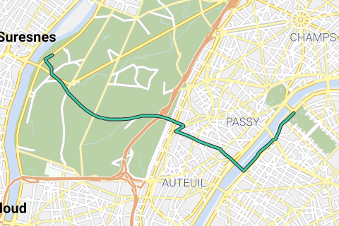 De simpelste route om van de camping Bois de Boulogne naar de Eifeltoren te komen. Je komt bij het vrijheidsbeeld de Seine over.