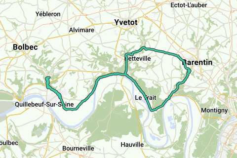 Lillebonne, Gravenchon, Petiville, St Maurice, Norville, Villequier, Caudebec, Le Trait, Duclair, Le Pont des Vieux, Villers Ecales, Bouville, Fréville, La Folletière, Rançon,Caudebec, Villequier, Norville, Petiville, Gravenchon, Lillebonne.