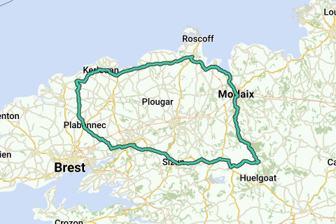 Boucle de Plouguerneau vers Landerneau, Sizun, Roc'h Tredudon, Berrien, Morlaix, Carantec, Sibiril, Plouescat, Guissény et retour à Plouguerneau