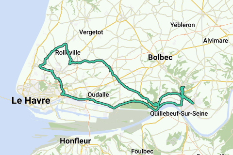Lillebonne, Gravenchon, Radicatel, Tancarville Bas, Route des Falaises, St Vigor, Harfleur, Montivilliers, Octeville, Notre Dame du Bec, Rolleville, Manneglise, Etainhus, St Romain, La Cerlangue, Tancarville Haut, Tancarville Bas, La Darse, Lillebonne.