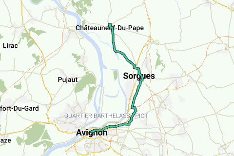 <p><a class="routeYou_embed" href="https://app.routeyou.com/fr-fr/route/view/6333912?utm_source=embed&utm_medium=article&utm_campaign=routeshare&navigation=external" title="Châteauneuf-du-Pape - Avignon - RouteYou" target="_blank"><img src="https://image.routeyou.com/embed/route/960x670/6333912-fr@2x.png" style="width: 100%; height: auto;" alt="Châteauneuf-du-Pape - Avignon"></a></p>