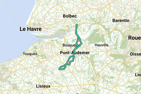 Lillebonne, Port-Jérôme, Quillebeuf, Trouville la Haule, Chemin Perey, Pont Audemer, Selles, Epaignes, St Sylvestre de Cormeilles, Cormeilles, Epaignes, St Symphorien, Tourville sur Pt Audemer, Les Préaux, Pt Audemer, Ste Opportune la Mare, St Aubin sur Quillebeuf, Quillebeuf, Bac, port Jérôme, Le Mesnil, Lillebonne.