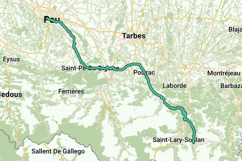 Départ lac de Loudenvielle-Vielle Louron-Arreau-Cold'Aspin-Payolle-Ste Marie de Campan-Bagnères de Bigorre-Loucrup-Lourdes-St Pé de Bigorre-Lestelle Bétharram-Mirepeix-Bizanos-Billère