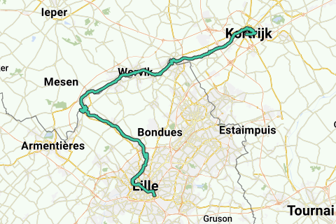 1er jour 59km Courtrai - Menin -Comines-Warneton - Deulemont - Wanbrechies - Lille