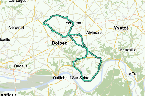 Lillebonne, Le Mesnil, Gravenchon, Petiville, St Maurice D'Etelan, Norville, Villequier Haut, Anquetierville, Grandcamp, Bolleville, Raffetot, Nointot, Mirville, Bréauté, Gonfreville Caillot, St Maclou la Brière, Yebleron, Raffetot, Lanquetot, Beuzevillette, Lintot, Grandcamp, Auberville, La Frenaye, Lillebonne.