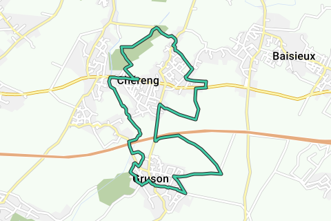 Départ de la mairie de Chéreng, rejoindre le bord de la Marque en direction de Gruson, traverser le centre de Gruson, empruntee le sentier des écoliers jusqu'à la rue Calmette que l'on emprunte à gauche, prendre à droite le chemin de l'arbre à poux, tourner à gauche dans le chemin de Bourghelles puis passer sous l'autoroute à droite rue Jean Ochin, tourner à droite au niveau des entrepôts. Au bout du chemin longer la D941 à droite et traverser (Prudence) pour prendre le chemin en face, tourner à gauche dans le chemin vert, tourner à droite rue du Maréquaix puis prendre le chemin à gauche pour aboutir rue gilbert Masquelin. tourner à droite rue du Gal Leclerc, dans le virage poursuivre tout droit rue de Tressin, prendre à gauche le chemin des écluses puis à gauche le chemin des vaches pour longer le château de la fédération des chasseurs, tourner à gauche dans la rue du château et au niveau de la grille, tourner à gauche Avenue du château pour rejoindre le point de départ.