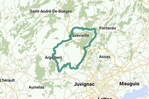 Vailhauquès, Argelliers, Les Matelettes, Viols le Fort, Viols en Laval, Mas de Londres, Pic St Loup, St Mathieu, Les Matelles, St Gély, Mas de Pierrette, Pont de Murles, route de Murles, Mas de Perri, Vailhauquès