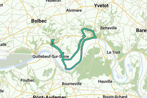 Lillebonne, Le Mesnil, Gravenchon, Petiville, Le Vélo Route, Villequier, Caudebec en Caux, Ste Gertrude, St Arnoult, Norville, St Maurice d'Etelan, Petiville, Les Tombeaux, Gravenchon, Le Four à Chaux, Lillebonne.