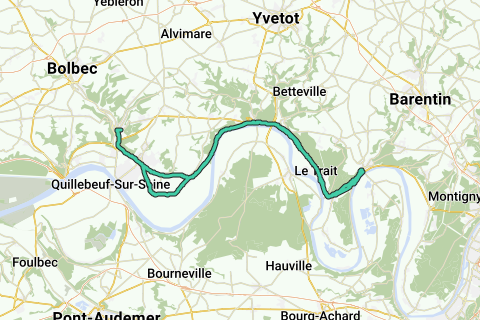 Lillebonne, Gravenchon, Norville, Villequier, Caudebec, Le Trait, Vélo route, Duclair, Bords de Seine, St Paul, Le Trait, Vélo Route, Caudebec en Caux, Villequier, Norville, Petiville, Gravenchon, Lillebonne.