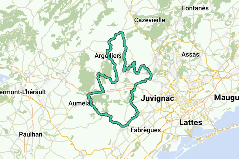 Vailhauquès, Mas de Perri, route de Murles, Combaillaux, Grabels, Bel-Air, Murviel, Pignan, Cournonterral, La Taillade, La Boissière, Croix de Félix, Argelliers, Les Matelettes, Viols le Fort, Saugras, Vailhauquès.