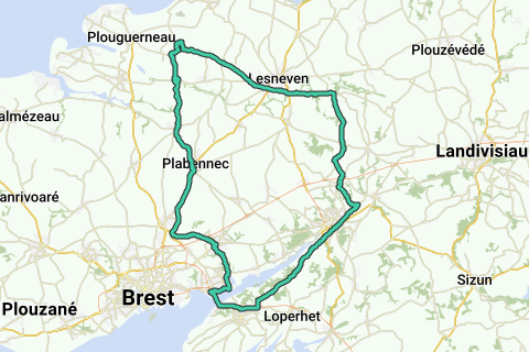 Boucle Plouguerneau - Landerneau - Plougastel - Guipavas - Plouguerneau