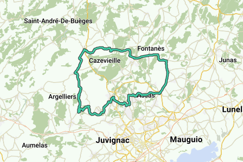Vailhauquès, Mas de Perry, pont de Murles, Mas de Pierrette, St Gély, St Clément, Prades, Assas, Montaud, St Bauzille, St Mathieu, Pic St Loup, St Martin, Viols, Saugras, Vailhauquès