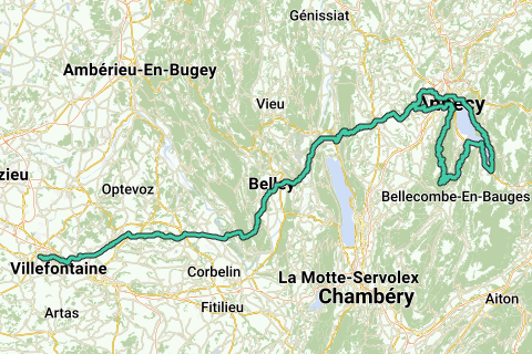 Cette balade en moto vous emmène autour du magnifique lac d'Annecy. La première partie de l'itinéraire traverse le Parc naturel régional du massif des Bauges. Dans cet impressionnant paysage de montagne, vous pouvez vous attendre à des virages en épingle à cheveux robustes, ce qui le rend bien sûr très amusant. La seconde partie longe ensuite les rives du lac d'Annecy. En chemin, vous pourrez vous arrêter à Menthon-Saint-Bernard pour visiter l'intéressant château.