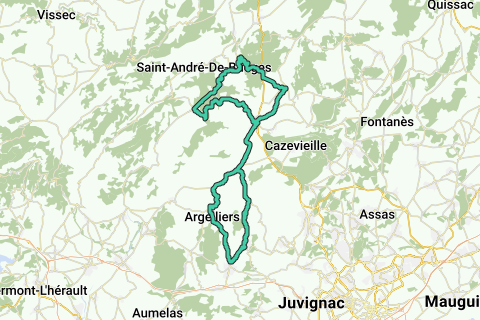 Vailhauquès, Saugras, Viols le Fort, St Martin, route de Biranques, route déchetterie, Notre Dame de Londres, route de Ganges, Issensac, Causse de la Selle, Frouzet, St Martin, Viols le Fort, Les Matelettes, Argelliers, Vailhauquès