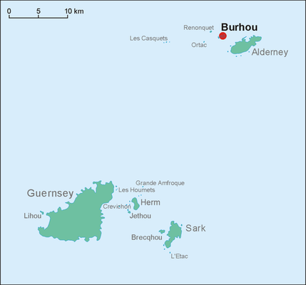 Burhou est une petite île Anglo-Normande, à moins de 2 km au nord-ouest d’Aurigny. Le chenal au Singe séparant les deux îles est dangereux, en raison du courant marin du Swinge qui amplifie les effets de marée surtout par vents contraires.