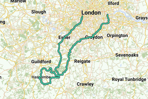 Un itinéraire très similaire à mon 'Londres - Surrey Hills et retour', mais je n'ai pas pris la deuxième boucle depuis Cranleigh, à la place, je suis allé à Greenwich.