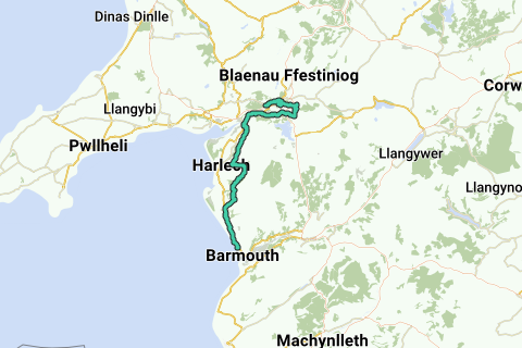 En partant de Barmouth, vous quittez la côte pour entrer dans le parc forestier de Coed y Brenin. Les routes non accessibles aux voitures peuvent être difficiles. Lors des descentes, il faut surtout faire attention aux moutons traversant. Au sommet des collines, vous avez une très belle vue sur la mer d'Irlande.