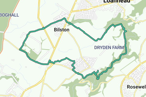 L'itinéraire commence et se termine à Chapel Loan, Roslin, Midlothian EH25 9PT, Royaume-Uni. L'itinéraire vous fait faire le tour de la chapelle de Roslin, mondialement connue.