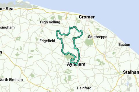Faire du vélo à Aylsham dans le Norfolk. Cette balade à vélo commence dans la ville historique d'Aylsham. De là, l'itinéraire se dirige vers le nord le long de routes de campagne tranquilles, à travers des paysages doucement vallonnés et des villages pittoresques, tels qu'Itteringham, Baconsthorpe et Hanworth. Ici, vous pouvez explorer les grands domaines de campagne des riches et célèbres - du Blickling Hall jacobéen, avec ses belles tapisseries et meubles, aux rosiers en cascade du Mannington médiéval, et au Felbrigg Hall du 17e siècle avec son jardin clôturé. Le long de cet itinéraire, vous pouvez découvrir certaines des églises à tours rondes du Norfolk, visiter les vestiges du château de Baconsthorpe du 15e siècle, et faire un tour sur un véritable chemin de fer à vapeur à voie étroite.