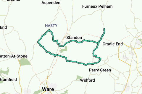 Cette randonnée à vélo vous permet de profiter des plus belles routes cyclables de Great Munden. Profitez de la nature à fond avec cet itinéraire. Vous pouvez vous attendre à tout le long de ce parcours : des montées, des descentes et de magnifiques endroits pour faire une pause ! Un excellent itinéraire ! Ma note : 9 (sur 10).