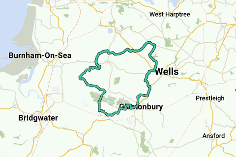 Vous traverserez plusieurs villages, y compris le village lacustre de Glastonbury. Vous souhaitez faire passer le message écologique ? Utilisez les transports en commun (gare de Polsham) pour rejoindre cette randonnée à vélo. Il y a peu (pas) de chances que vous croisiez des voitures sur cet itinéraire. Une balade difficile. Restez à l'affût d'un arrêt café. Profitez des environs. Ne manquez pas de magnifiques paysages. J'ai failli oublier de mentionner les grottes de Wookey Hole. Une belle pause.