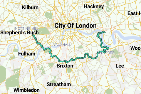 Als de ‘gentrificatie’ van hippe wijken in de Londense agglomeratie toeneemt, zoeken jonge gezinnen en kunstenaars steeds weer nieuwe dorpen in de stad met lage huurprijzen en een artistieke sfeer. Die dan op hun beurt weer te glamarous en duur worden… Deze fietsroute verbindt de oude en nieuwe trendy ‘boroughs’ van Zuid-Londen: Kensington, Brompton, Chelsea, Battersea, Clapham, Brixton, Denmark Hill, Peckham, New Cross, Deptford, Greenwich, Rotherhithe en Canary Wharf.