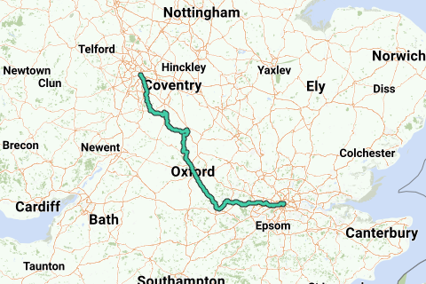 Variante VTT du chemin de pèlerin Saint-Jacques allant de Birmingham à Londres en passant par Stratford, Oxford et Reading. Cet itinéraire fait partie du réseau du Camino menant à Saint-Jacques-de-Compostelle et se connecte au chemin du pèlerin vers Douvres.