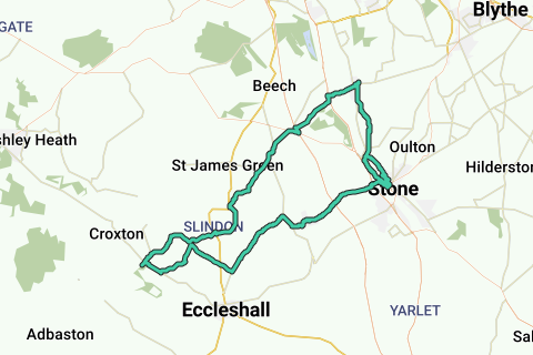 Café. Le jardin clos de Sugnall, plein de pommiers et de fleurs, possède un café, avec des places assises abritées à l'extérieur, ainsi que des places assises intérieures et extérieures - parfait par tous les temps. Le chemin de halage du canal, puis, une fois traversé l'A34, des routes de campagne tout le long (environ cinquante mètres sur une route A). Il pourrait y avoir plus de circulation sur le chemin du retour car l'itinéraire passe dans une zone d'industrie légère autour de Cold Meece. C'était autrefois un énorme complexe de munitions, abritant maintenant une prison, des unités industrielles et un champ de tir militaire. Pas pittoresque mais définitivement historique. Une attention particulière doit être portée lors de la traversée de l'A34 à l'aller et au retour vers Stone. www.sevendaycyclist.com